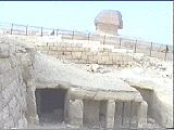 here we see a image of the sphinx temple , notice the whole in the bedrock in the middle of the photo.