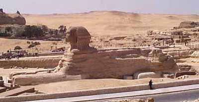 The Sphinx faces due east, with a small temple between its paws. The temple resembles the sun temples that were built later by the kings of the 5th Dynasty.